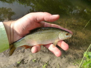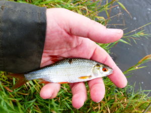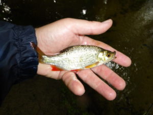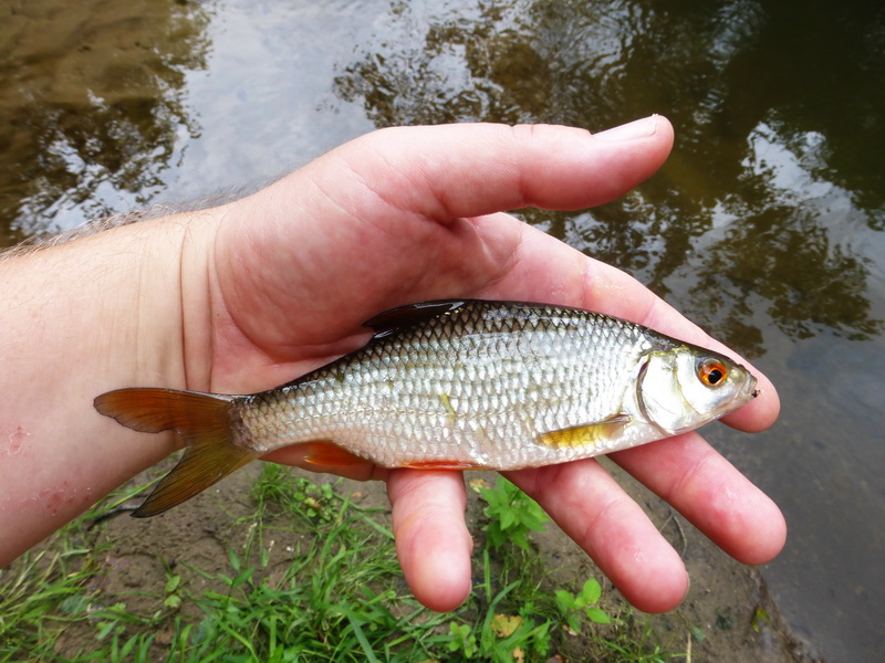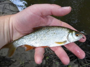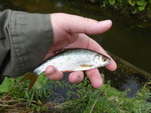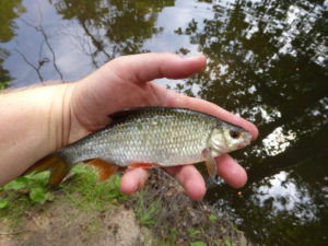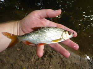 I could coax the fish out of the debris and was surprised to find a roach at the end of the line.