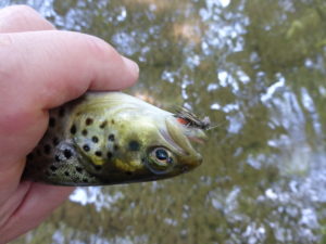 The sunlight revealed a stationary trout at the front of a pool and I did my best to get a fly near that fish without
