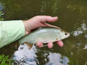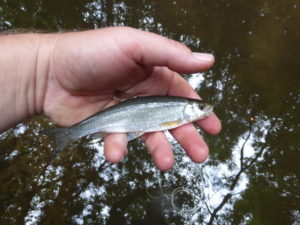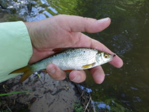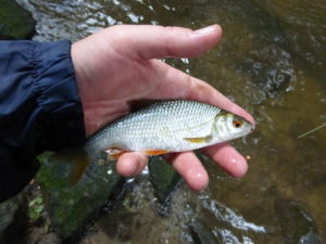 At one of the slightly deeper holes I got a good take and thought at first I had hooked a trout as the fish