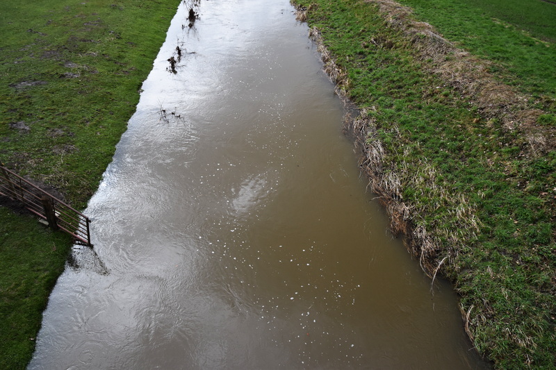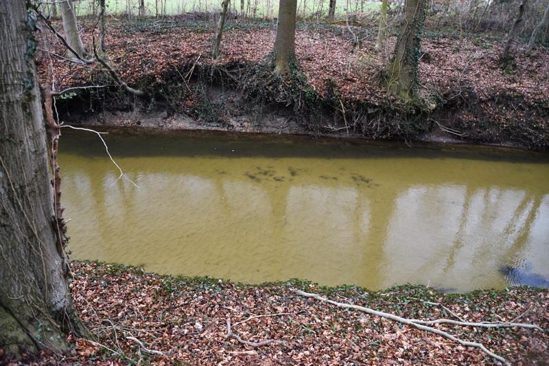 The mission to catch fish after a week of stormy weather with lots of rain was sort of a mission impossible. All the water on the fields and in the ditches did not forebode anything good. As expected all the streams where filled to the brim and had coffee colored water.