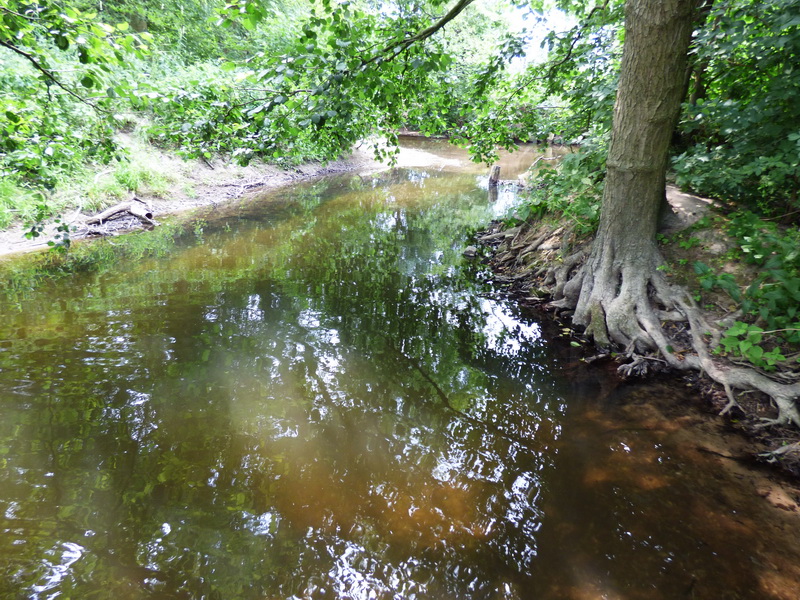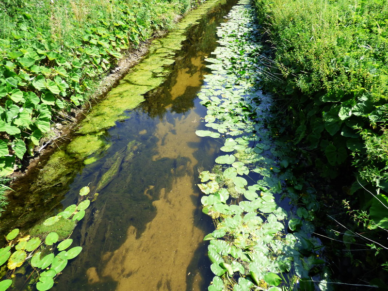 The signs of the high water where heaps of algea that had accumulated and formed little mounds in the stream.