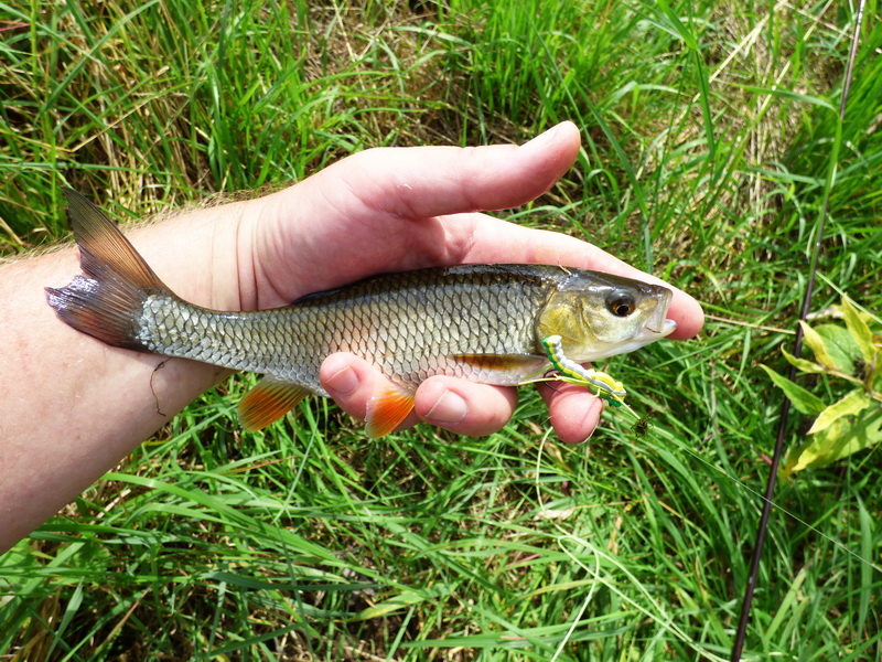 Cloudy and overcast skies did not help finding the fish but in the end I found some chub in a deeper pool and had a go with the hopper.