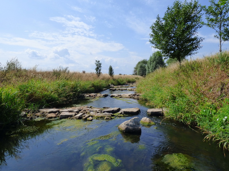The stream was slightly higher than last weeks as water now flowed over the rocks of the weirs.