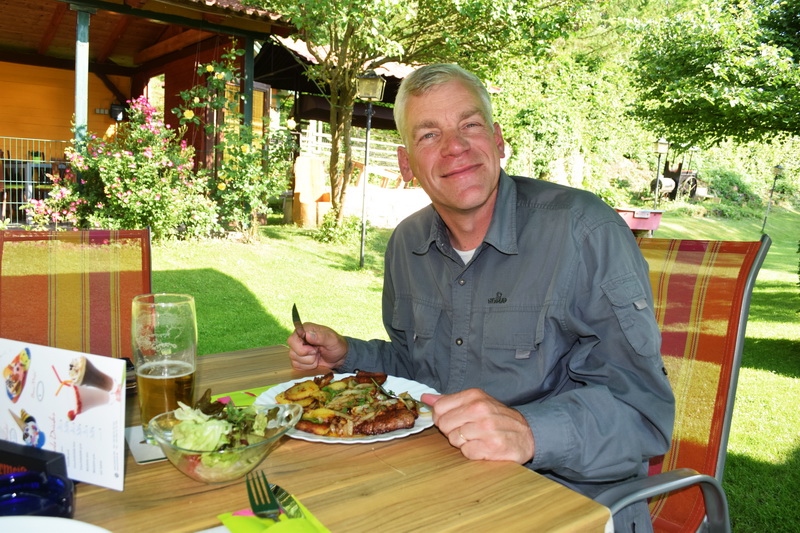 With the long home journey in mind we had decided that 17:00hrs would be the end of the fishing session. Close to that time the radio call came that it was time to hit the beer garden of the pub for dinner.