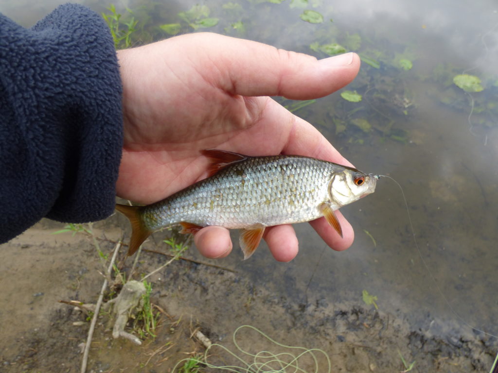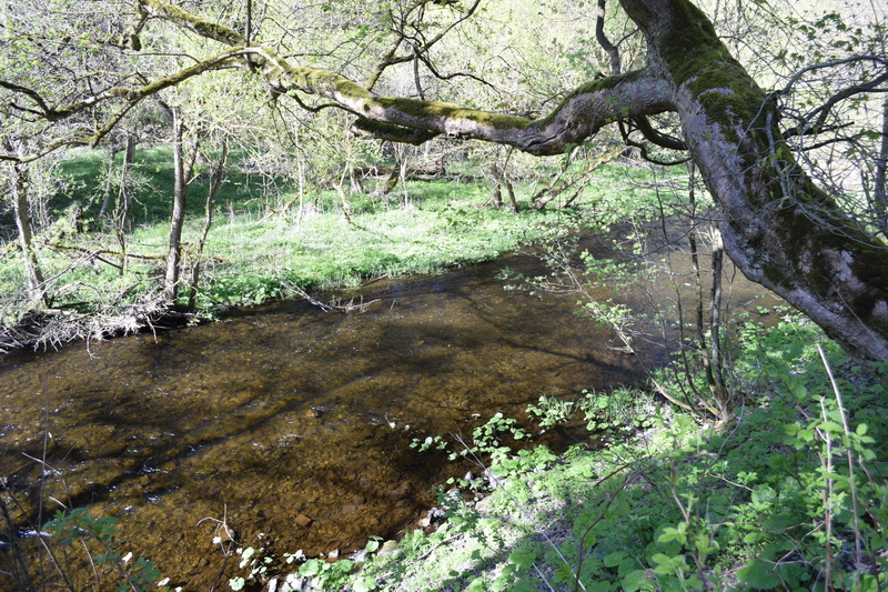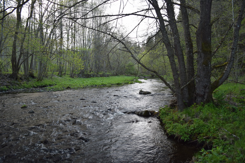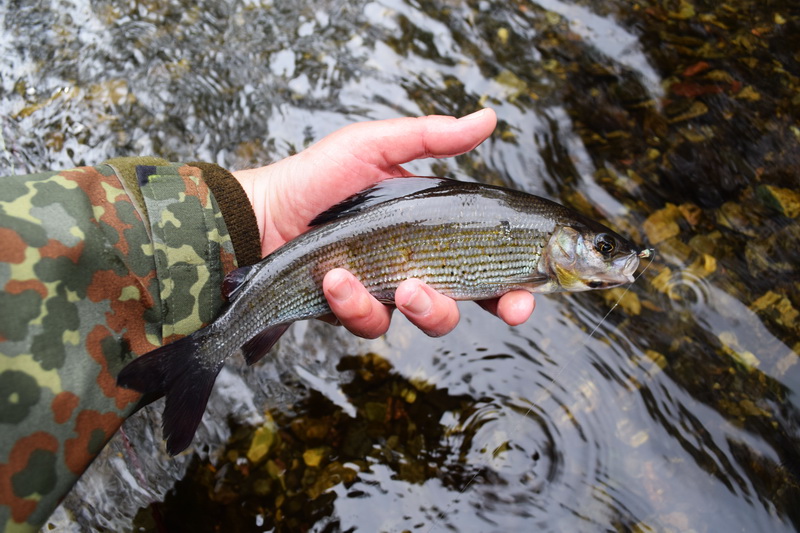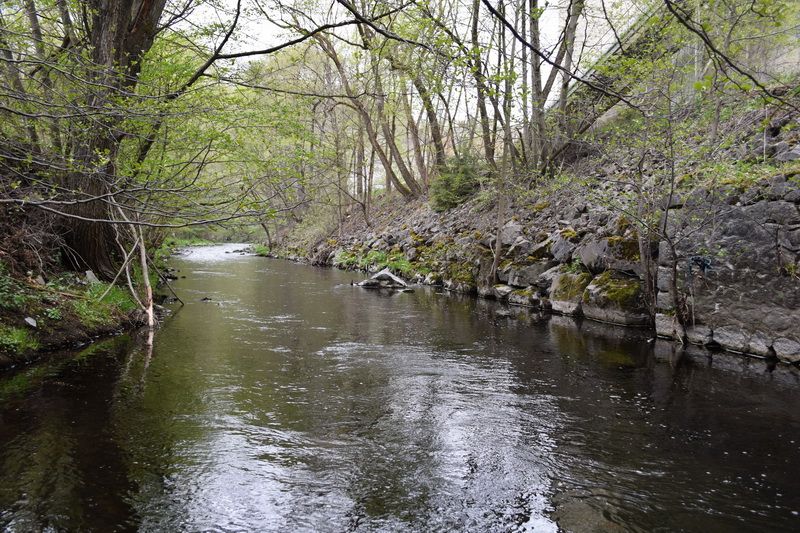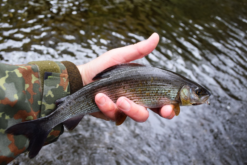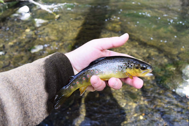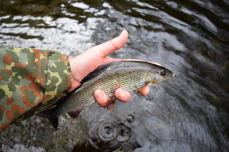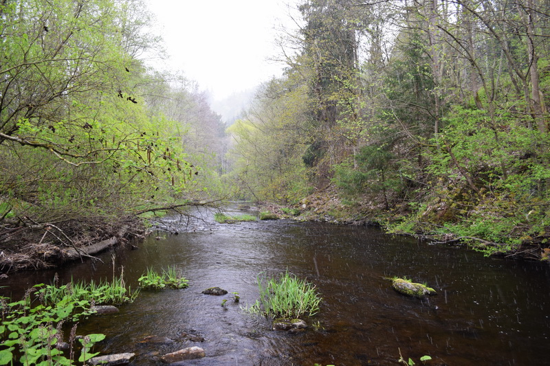 Missed two trout in the afternoon but hooked a good one just before the rains started.
