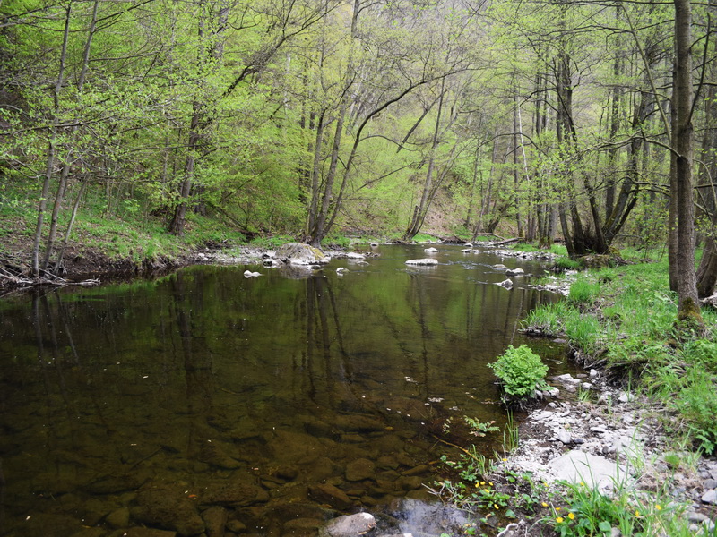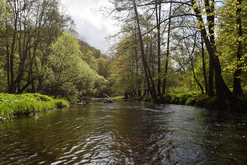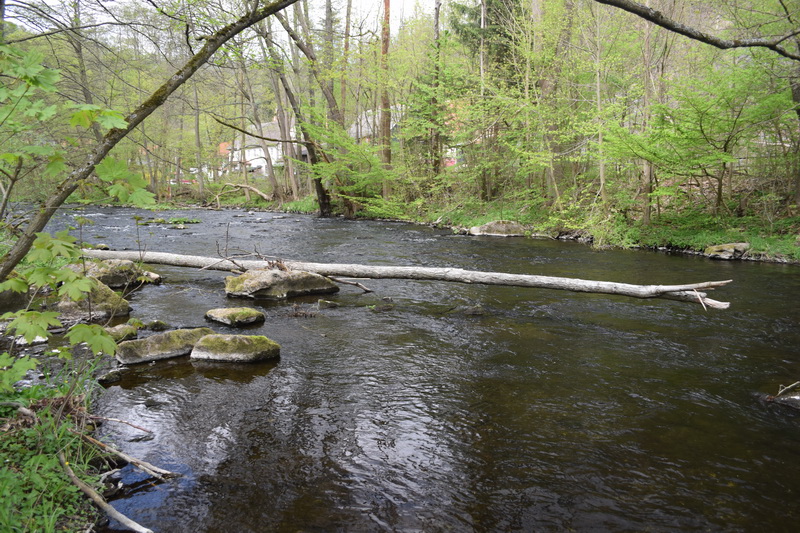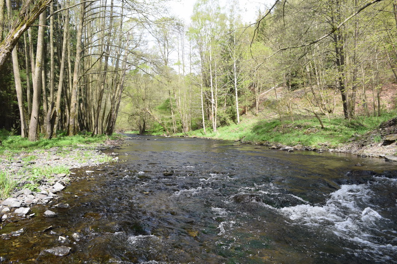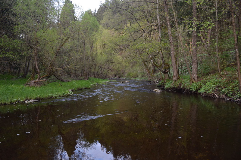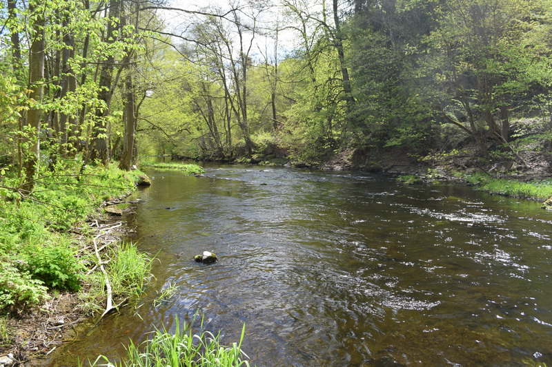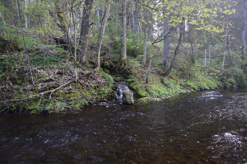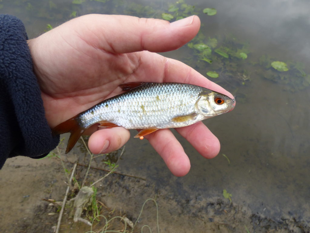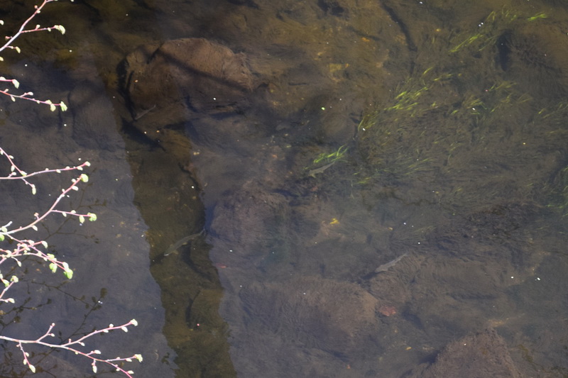 Missed two trout in the afternoon but hooked a good one just before the rains started.