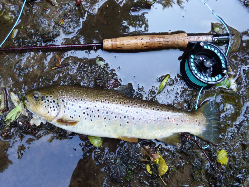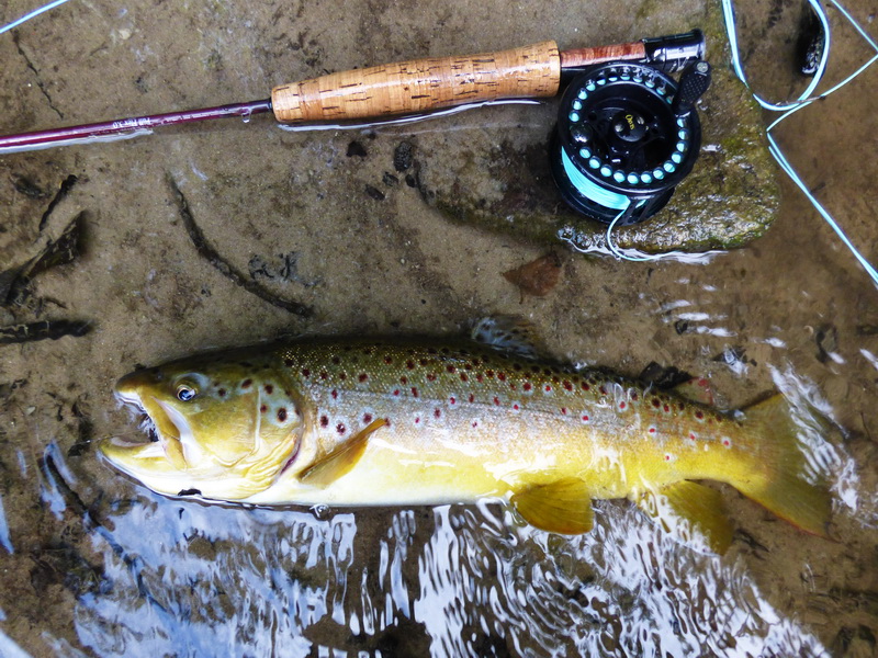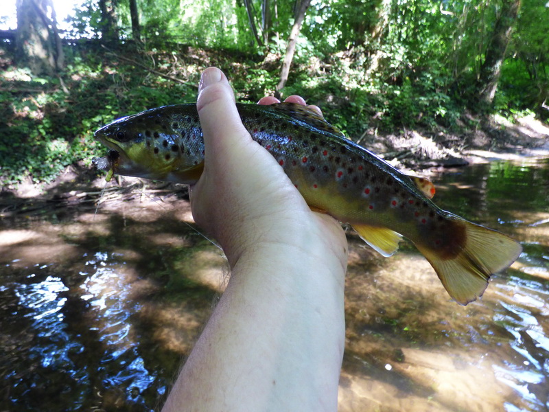 When I spotted the big brown from last week again I just could not resist to toss another big mayfly under the tree, same result.