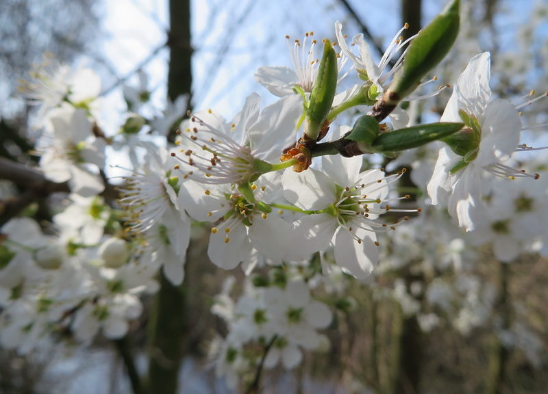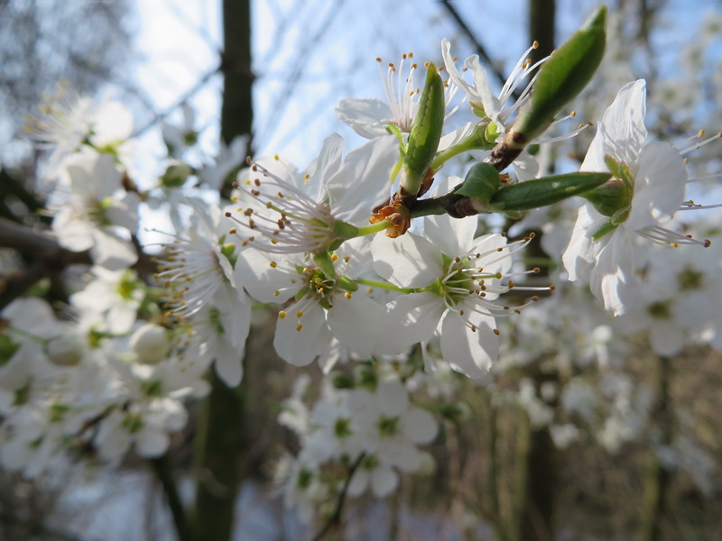 Water is still clear but the surface is now cluttered with debris from the flowering Alder and Hazel trees.