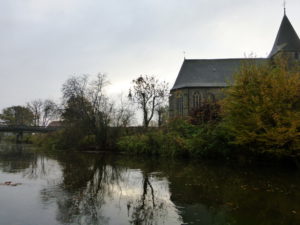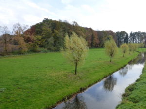 At the river the water was pretty clean be it littered with leaves and pushing more water