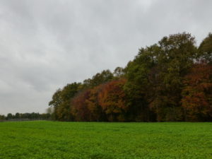 The woods colored from green and yellows to brown now.
