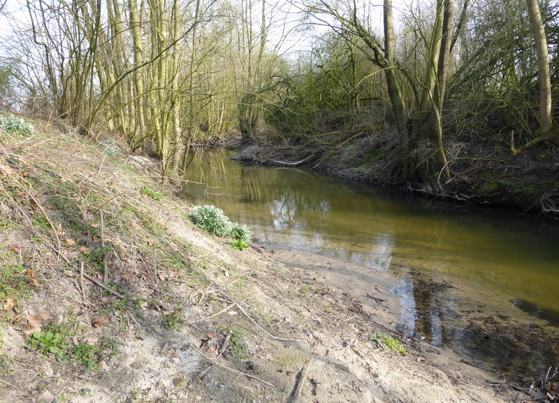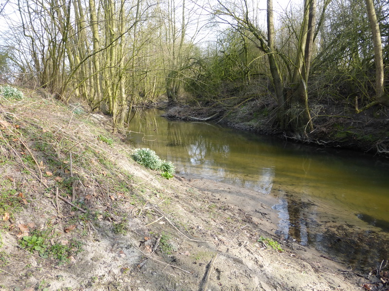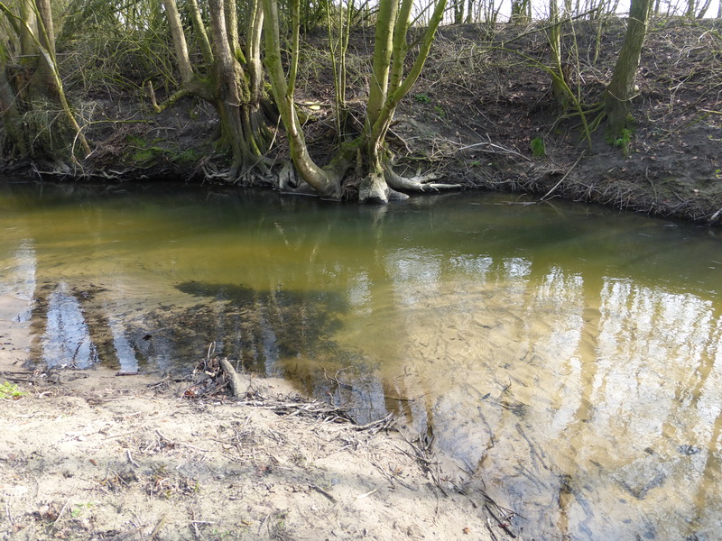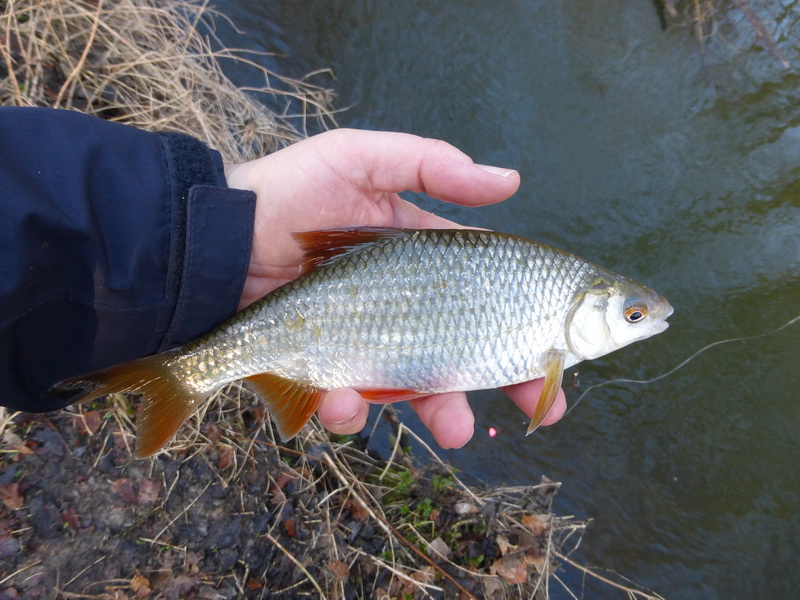 At a spot were a small ditch joined the main stream I spotted hordes of roach hiding behind a