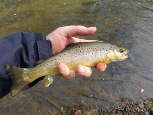 It turned out to be my first brown trout of the season, not really big but a scrappy fighter on the 2-weight.