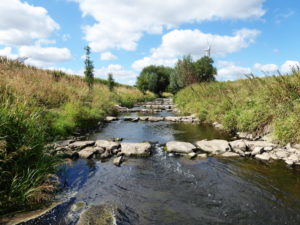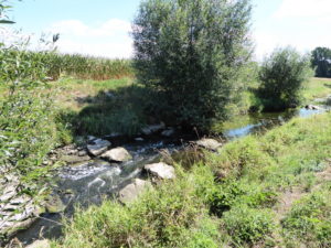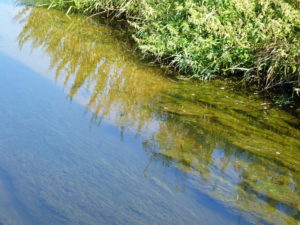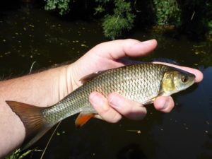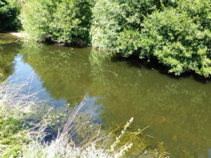 further downstream in the open countryside where the many chub seem to thrive in the hot weather.