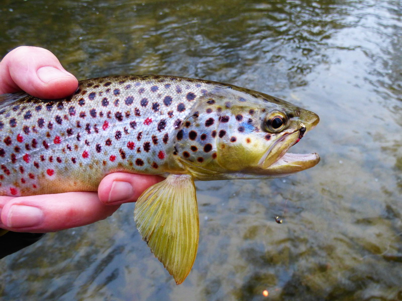 The bonus fish of the day was a nice brown trout that put a good bend in the 4-weight trout bum rod I was using.