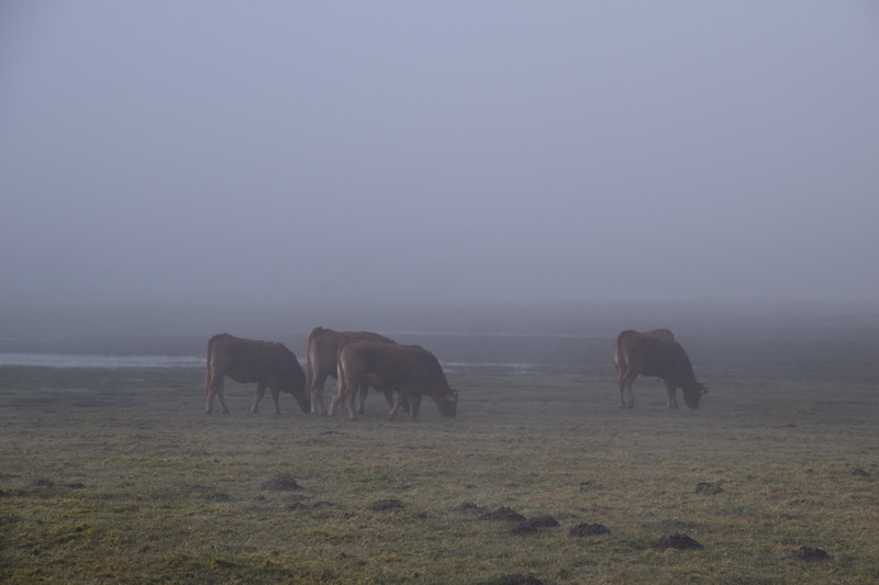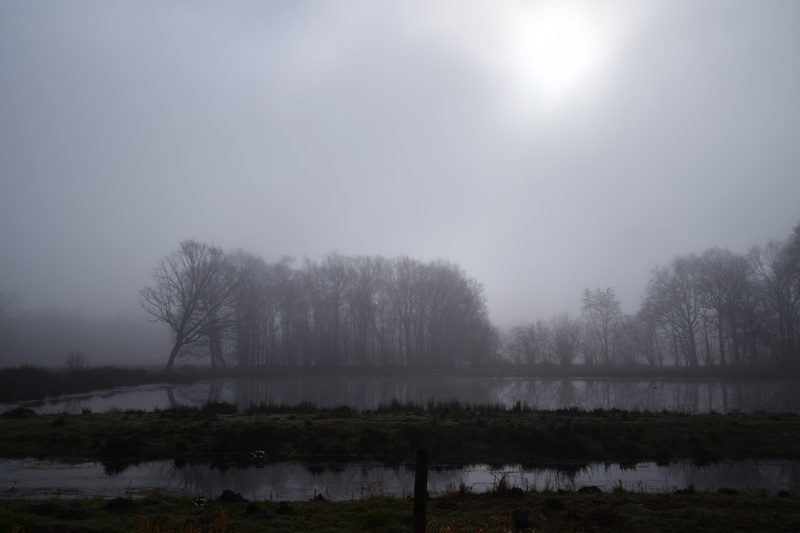 The skies where clear and blue  in the city, as soon as I entered the farmland low clouds and fog rolled in.