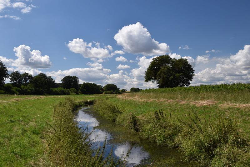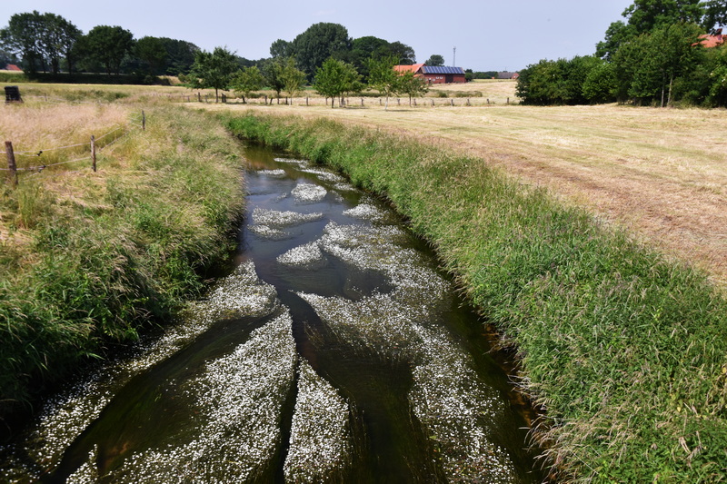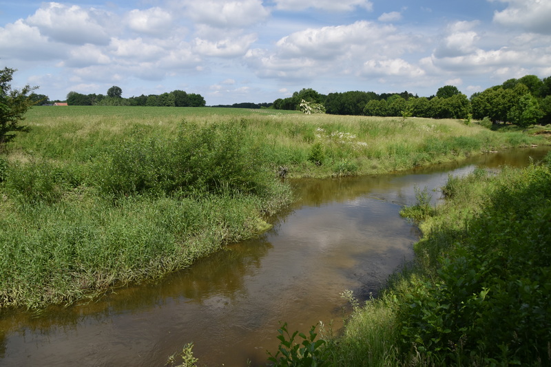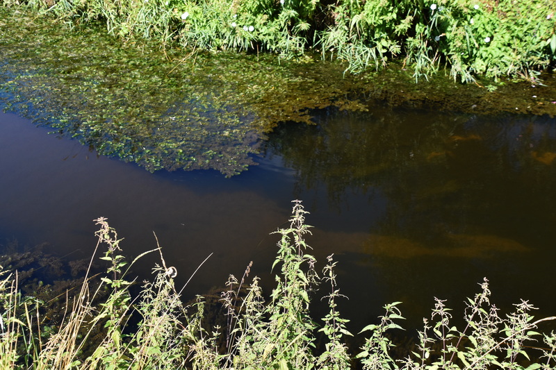My hotspot had many fish but without of sunlight I could not spot the fish with their dark backs over the dark weed. Only at the sections with sand bottom you could see moving fish, I scared most fish away. At one of the more fast flowing riffles my fly suddenly disappeared in the current. It was not the current though but a chub … noticed it too late and so the fish was gone.