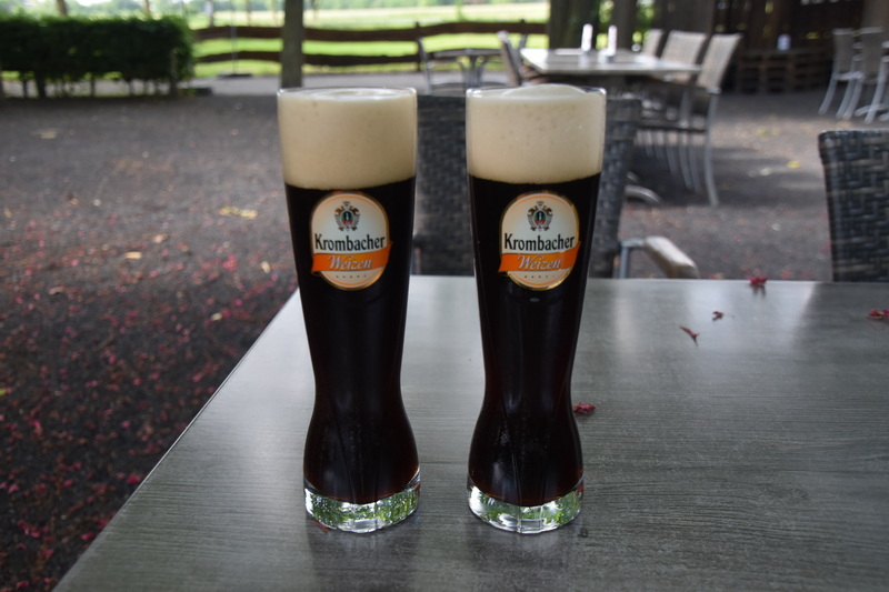 As starters I ordered the Manta platte, a curry sausage with fries. Next was the salad with baked feta cheese. Skipped the desert as I was stuffed. The beer garden had plenty of visitors, amongst them pagans who ordered the strawberry beer .. beer with strawberry sirup and strawberries (lady drink). I made a picture of it otherwise you would not believe what savagery goes on at this side of the pond.