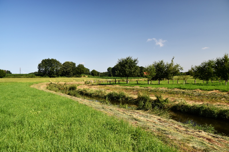 The next spot was again overgrown and now one bank had been fenced to hold some ponies. Again totally overgrown banks so just reaching the water was hell in that heat. I found one open spot and one big chub and boy it went for the mayfly. But just as it was about to gulp the fly in I struck … too early. The fly came out and the chub ran off. With little wind and bright sunshine I had to run for cover again and luckily a shade tree was nearby.