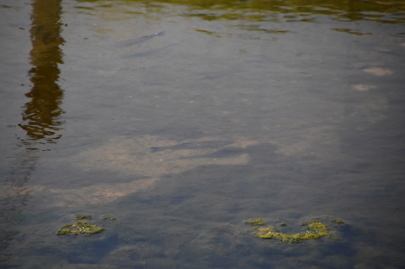 I checked out a section downstream and noticed a few fish but the high banks and high grass made casting almost impossible. It was now midday with about 88F and bright sunshine. The heat was getting to me and I needed a break in the shade.