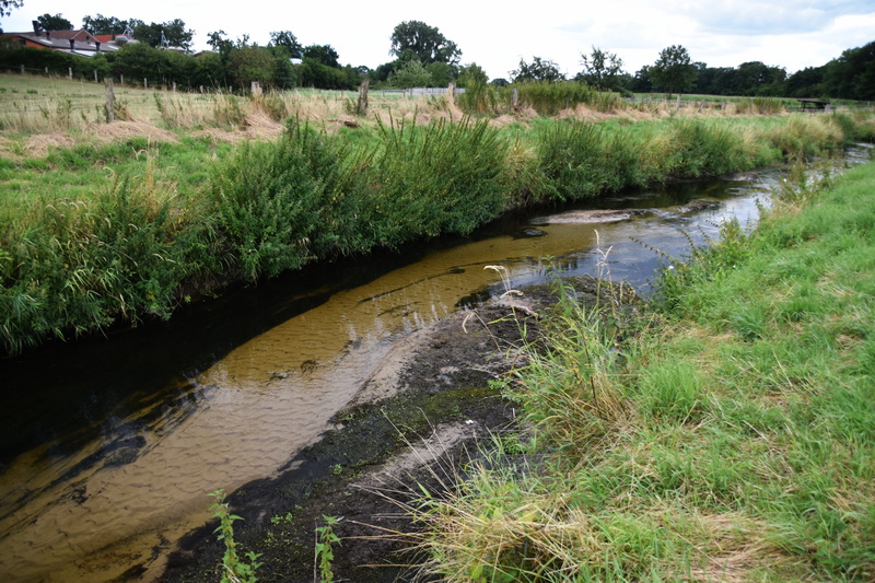 With predicted exceptionally hot weather and the low level of the stream I choose to go after chub on Saturday, ideal weather for that species. I checked out some spots along the way and spotted a few of the bigger fish. The shallow wide section of the feeder was my target area and when I arrived there plenty of fish where hovering around.