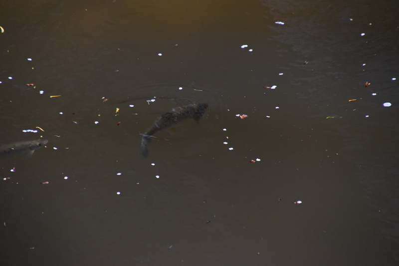 I fished downstream from the mill pool in the now very shallow water and caught some