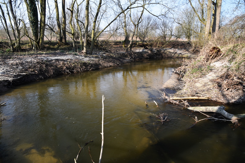 Already late in the afternoon the sun was low in the sky and I was still fishless. Could it be, first skunk of the year … nah … plan C was drafted. There was one spot where the local council had done some stream restauration. A formerly straightened part had been changed in a freely meandering stream with a side channel that flooded during extreme high water.